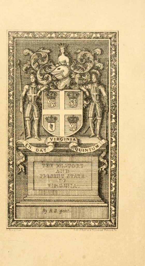 - Stéfan Sinclair and Geoffrey Rockwell, “Cirrus”, Voyant Tools, accessed April 3, 2024, https://voyant-tools.org/?corpus=ad6a5ad0ce99bb5bb6136a1376c68215&view=Cirrus. Beverley, Robert, Approximately, and Charles Campbell. The history of Virginia, in four parts. Richmond, J. W. Randolph, 1855. Pdf. https://www.loc.gov/item/01006558/.; Bland, Edward, -1653, Sackford Brewster, and Elias Pennant. The discovery of New Brittaine. Began August 27. anno Dom. London, Printed by T. Harper for J. Stephenson, 1651. Pdf. https://www.loc.gov/item/04029775/.; Plowden, Charles, and Ya Pamphlet Collection. A short account of the establishment of the new See of Baltimore in Maryland: and of consecrating the Right Rev. Dr. John Carroll first bishop thereof on the feast of the assumption,: with a discourse delivered on that occasion, and the authority for consecrating the bishop, and erecting and administering the said see: to which are added extracts from the different bills of right and Constitution of the United States. London: Coghlan, 1790. Pdf. https://www.loc.gov/item/2004695062/.; and Smith, John, and Jay I. Kislak Reference Collection. The generall historie of Virginia, New England & the Summer Isles: together with The true travels, adventures and observations, and A sea grammar. Glasgow: J. MacLehose ; New York: Macmillan, 1907. Pdf. https://www.loc.gov/item/75320262/. ↩︎