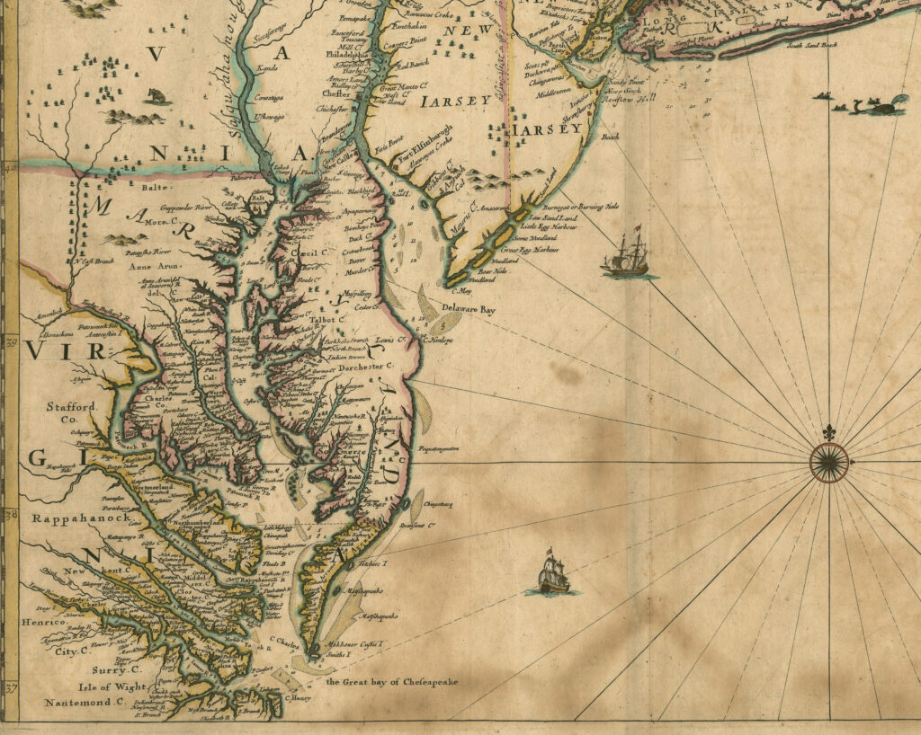 - Morden, Robert. A New Map of New England, New York, New Jersey, Pennsylvania, Maryland and Virginia. 1685. The University of Maryland Digital Collections. https://digital.lib.umd.edu/mdmap/1685/a-new-map-of-new-england. ↩︎