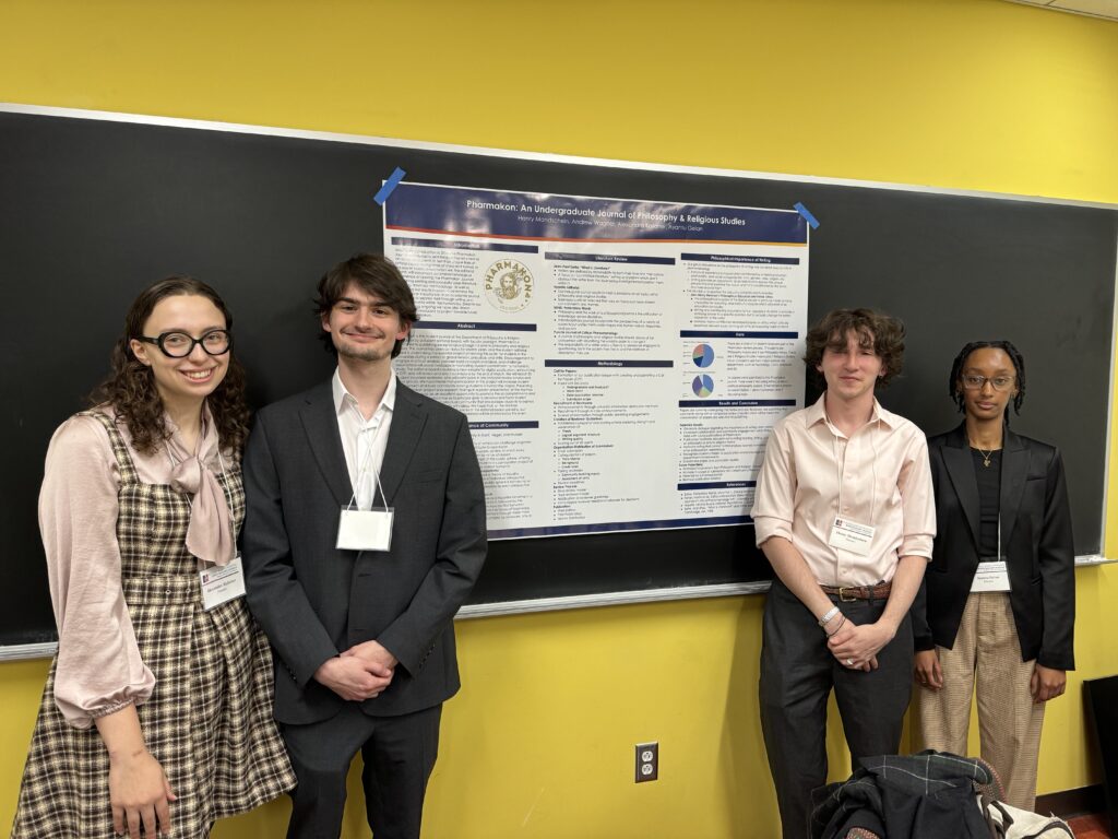 Henry is a senior from NYC majoring in Philosophy. His philosophical interests lie in bioethics, existentialism, and phenomenology. Outside of Pharmakon you can find him cooking, going to museums, and hanging out with friends.Ayantu is a Philosophy major and Korean minor from Atlanta, Georgia. She plans to attend law school and specialize in intellectual property law. Ayantu enjoys learning languages, watching anime, and going on long walks.Alexandra (Lexi) Kallaher is a senior majoring in religious studies with a minor in international affairs. Her research interests include secularism, Islamic jurisprudence, the Pauline letters, and religious violence. Outside of school Lexi enjoys talking about Taylor Swift, baking, board games, and traveling with friends.Andrew Wagner is a senior studying philosophy and religious studies. Born in Louisville, Kentucky, his academic interests include phenomenology, religious existentialism, and Christian mysticism. Outside of school, he enjoys playing the electric guitar, running, and playing video games with his friends.Pharmakon Editorial Board presenting at the 34th Robyn Rafferty Mathias Student Research Conference