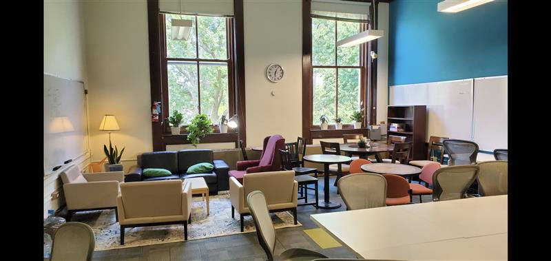 We have remodeled Hurst 202 to become “a third place” for faculty – a place away from home and away from work to gather, socialize, and build community. Faculty can enter by AU ID swipe. The space is multi-functional – designed to enable work, relaxation, connection, and fun. A small kitchen with coffee, tea, a fridge, and a microwave is attached.