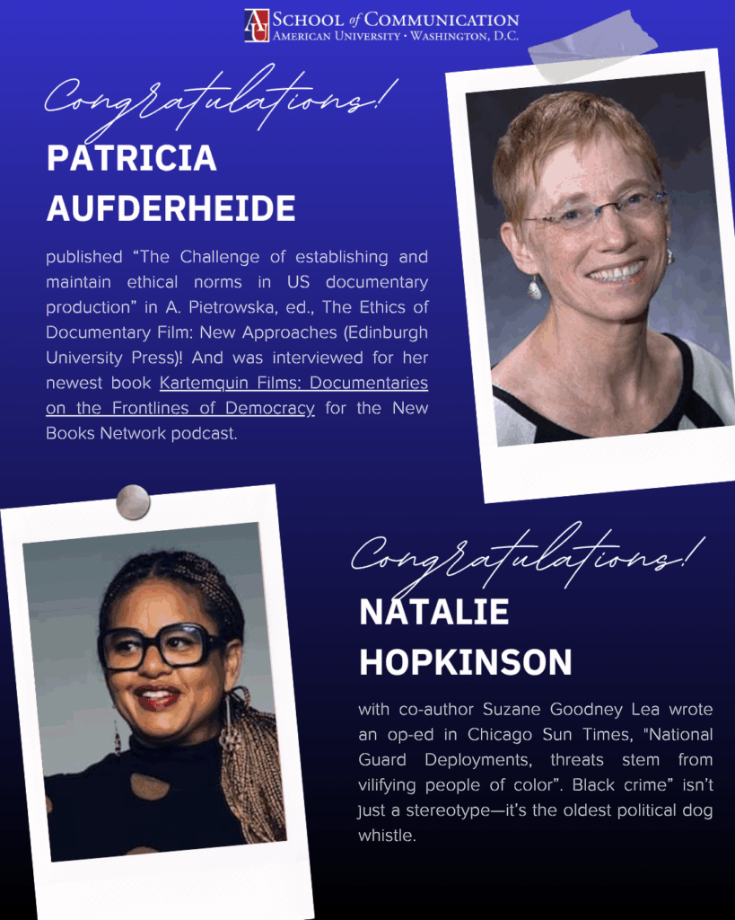 Patricia Aufderheide was also interviewed for her newest book Kartemquin Films: Documentaries on the Frontlines of Democracy for the New Books Network podcast.